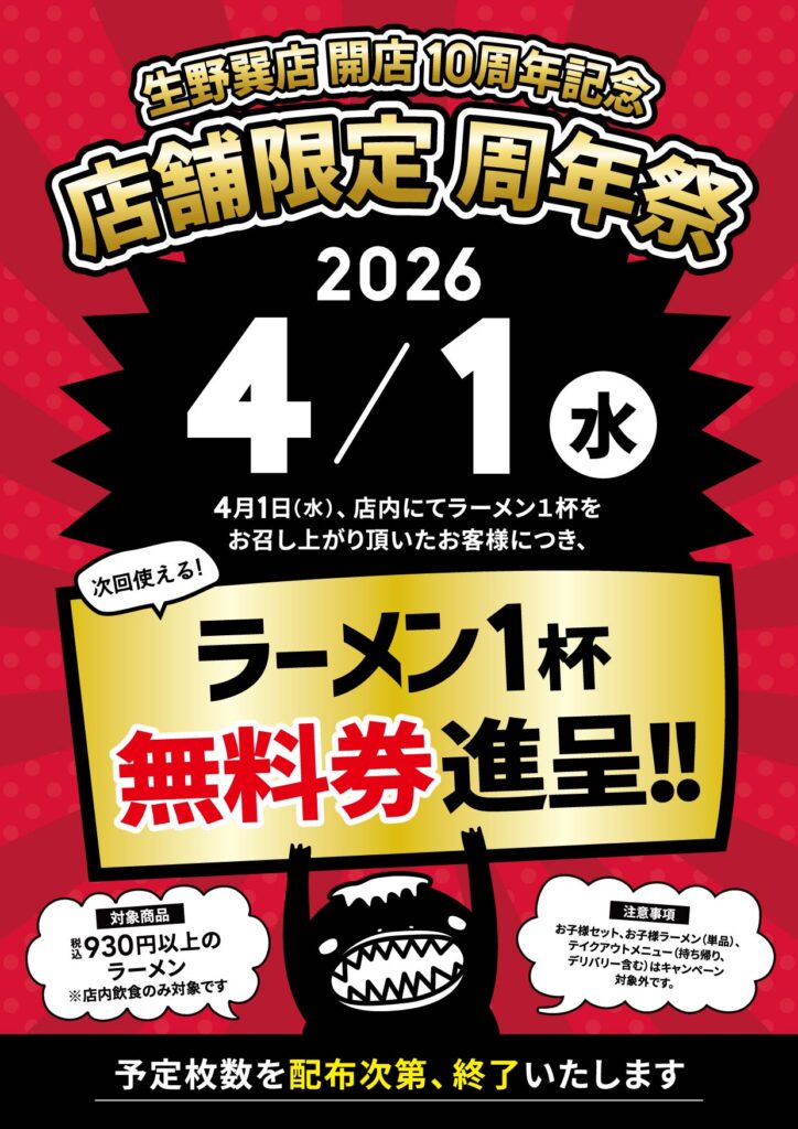 2026年4月1日(水)に生野巽店限定の「店舗限定 周年祭」を開催いたします!
