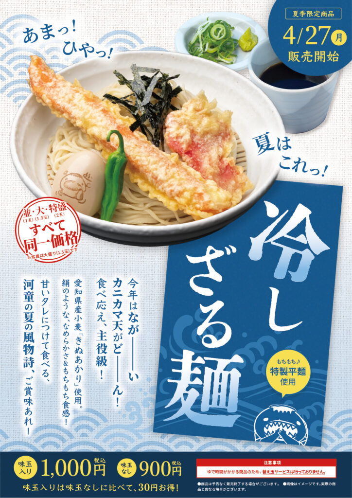 河童ラーメンの夏の風物詩「冷しざる麺」が今年も登場いたします!